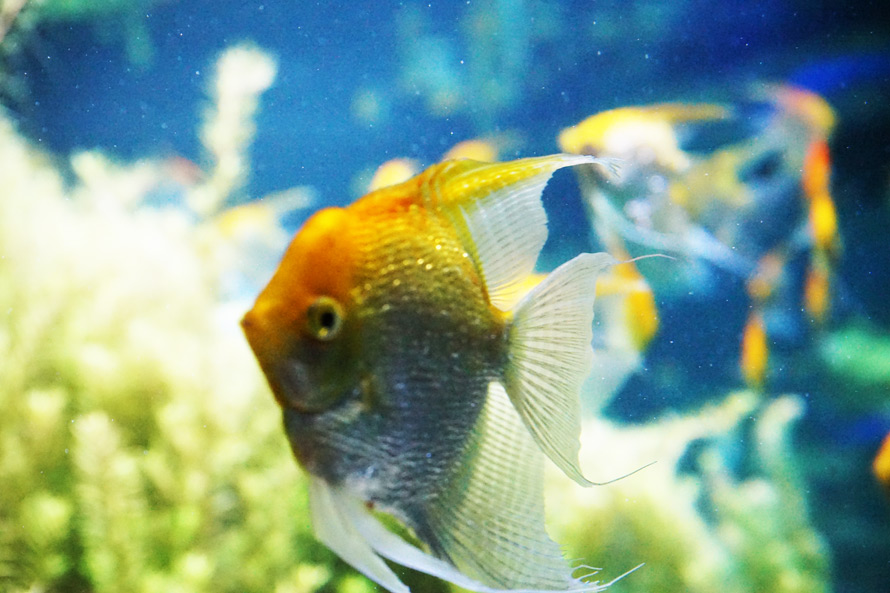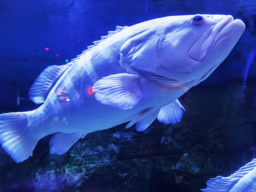 一进馆便是一条让人惊艳的玻璃隧道,黑色的食人鲳、长有胡须的红尾护头鲿、体型较大的巨骨舌鱼……各种各样具有强大杀伤力的海洋生物从头顶越过,仿佛是一条穿越时空的隧道,带你进入无限奇妙的海底。