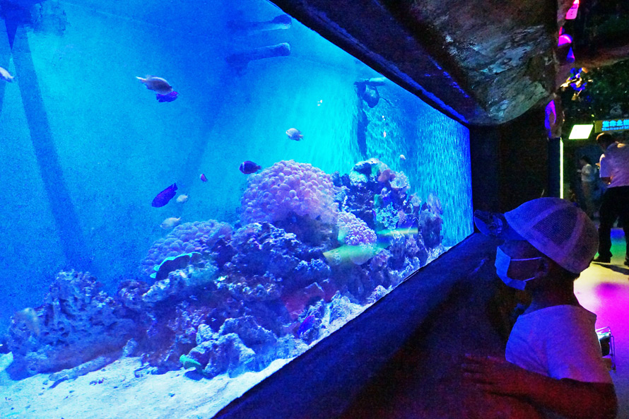 透过透明玻璃看到粉红色的美人鱼正在摇曳尾巴,原来,人鱼剧场每天都会定时上演美人鱼表演,讲述小人鱼对爱情、理想的追求。当曼妙舞姿遇上悠扬音乐和声情并茂的旁白解说,让人顷刻间深陷小人鱼的故事情节里。于是,索性安静地坐在木阶上,用心欣赏这场专属于人鱼的美好爱情狂想曲。