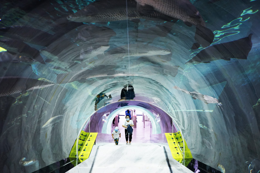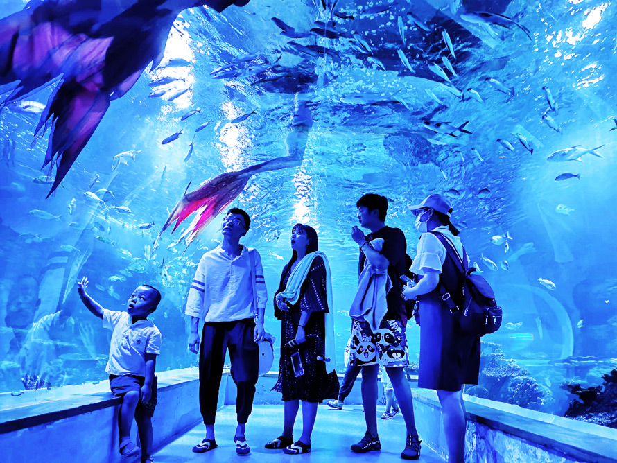 这里的面积特别大,聚首约2万平米,整个场馆分为上下三层,拥有十大主题区域、三大剧场、二十余项大型互动游乐体验,充分发挥观赏性、娱乐性、体验性、教育性、互动性,将海洋珍奇生物展示无余。