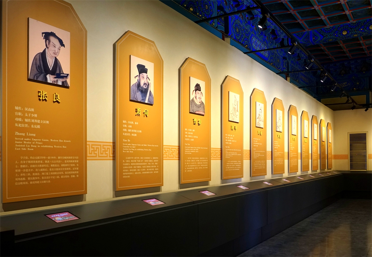 在每一位不同历史时期涌现出来的名臣展板下方有一个长方形的显示屏,你只需触摸一下,就会有详细的简介,方便你快捷具体地了解感兴趣的历史人物。