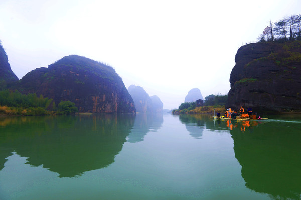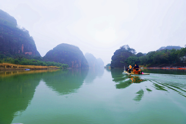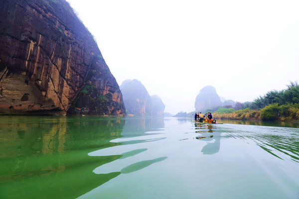如果你就此以为龙虎山缺水,那你太主观了,泸溪河的景色是明摆着的,似一条逶迤的玉带,把龙虎山的奇峰、怪石串联在两岸,这是龙虎山最精华的景区,必须坐一坐竹筏。