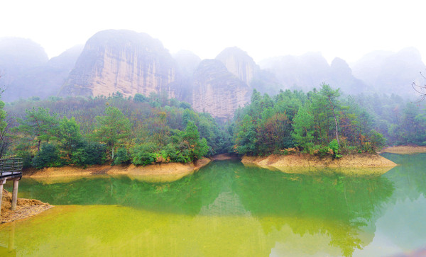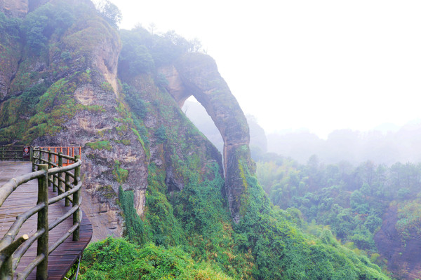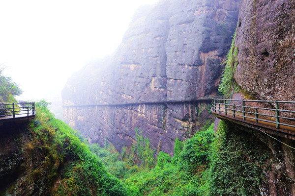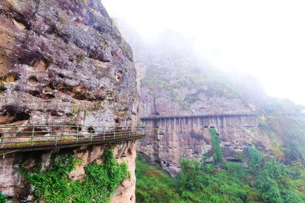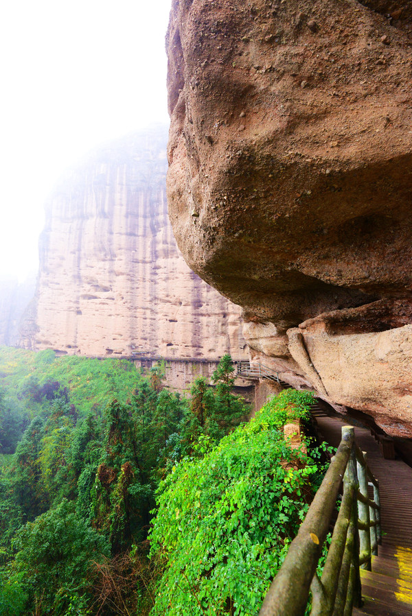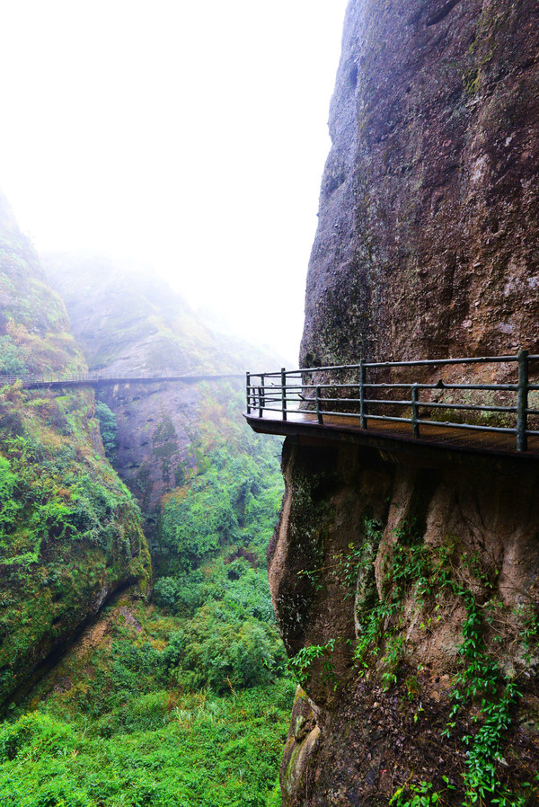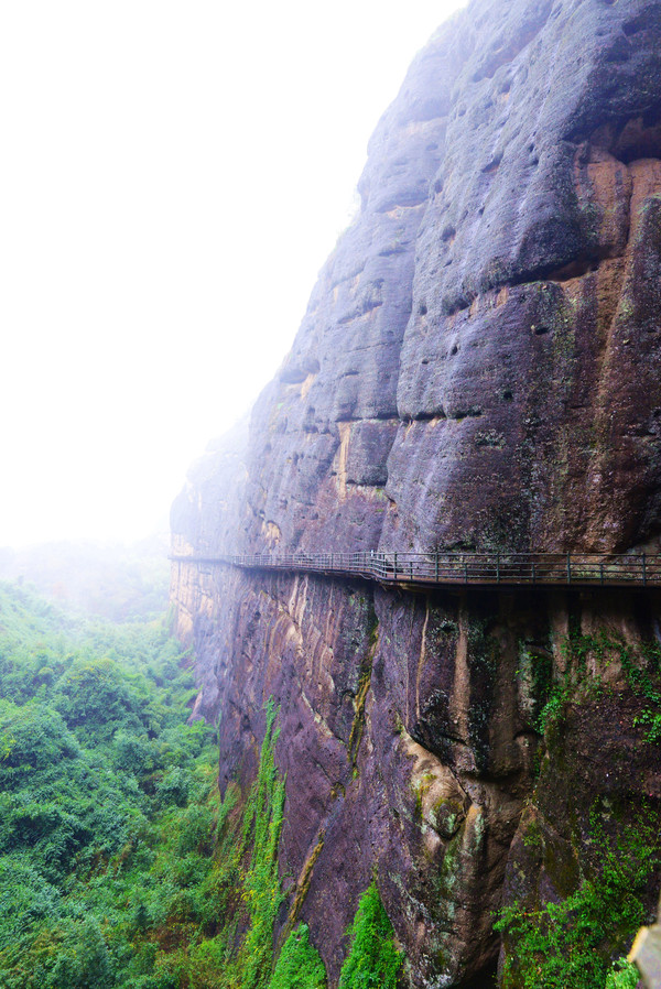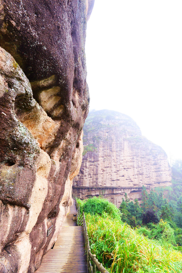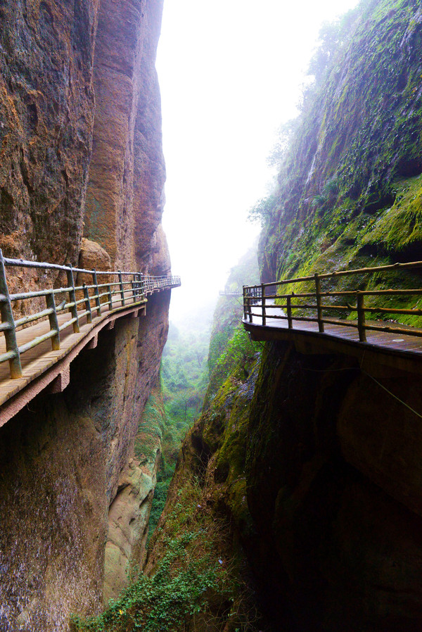悬空栈道像一条游龙蜿蜒缠绕在悬崖峭壁之上,全长3公里,雨刚停,山里的空气负氧离子超标,一路上自带仙气,雾来山更佳,雾去山如画。龙虎山属于丹霞地貌,在中国最美的七大丹霞地貌中排名第四。