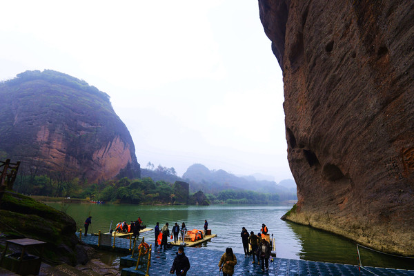 从码头上筏,漂到终点仙水岩,七里之内有100多座山峰,奇峰逼岸,精华是仙水岩这段的24座山崖,一崖一景。如果没有龙虎山的钟灵毓秀,就可能吸引不了张道陵的到来。