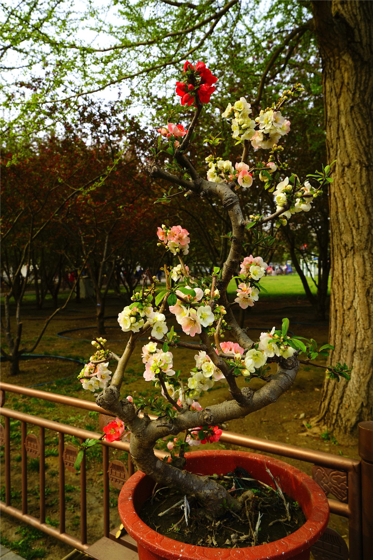 海棠花自古以来就是我国特有的雅俗共赏的名花,有花中神仙之美誉。一进公园北门,一件件盆景艺术精品夺人眼球。300多盆18个品种的海棠及其它精品花卉陆续开放,成为赏花人和摄影爱好者集聚最多的地方。