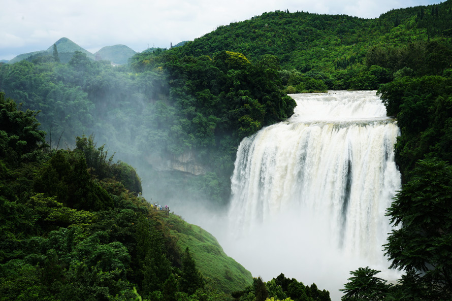 其实,黄果树不是只有这一条瀑布,而是一片瀑布群,旁边还有一条陡坡塘瀑布,同样是“今古长如白练飞,一条界破青山色。”绵绵群山造就了黄果树瀑布的壮美,蜿蜒曲折的白水河孕育了瀑布群的雄浑,它们滋润着这一方土地,刻画出人迹罕至的山野绝世美颜。