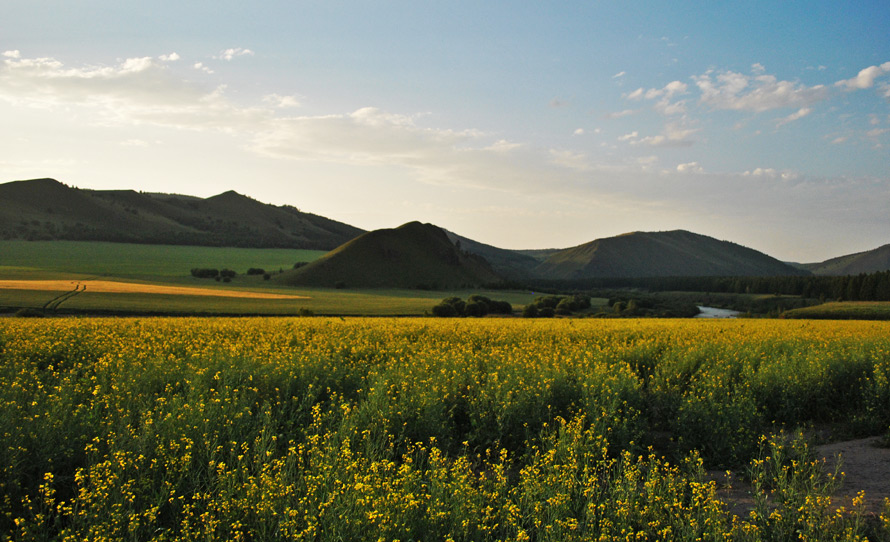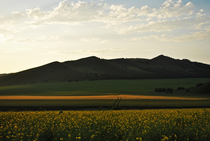此刻,科尔沁草原安静祥和,各色各样的野花浴着阳光,在广阔的草原上争奇斗艳,偶尔,三两棵树突兀地出现在视野,一如画笔绘就的简笔,点缀了视觉。