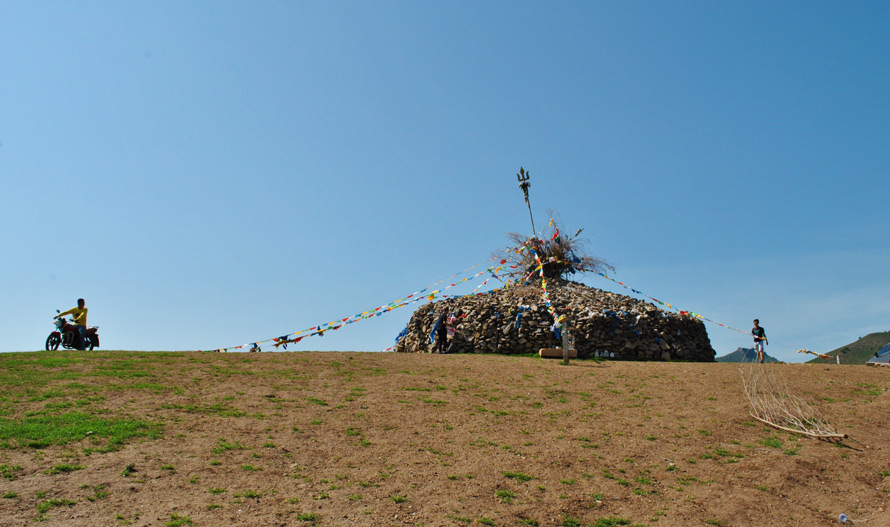 在草原上,敖包也是一大景观,历史文化久远深厚,旧时遍布蒙古各地,多用石头或沙土堆成,也有用树枝垒成,最初是作为路标和界标,后来演变成祭祀祈福;敖包一般位于高坡或丘陵之上,形状多为圆锥体,高达数丈。从远处看,真好像一座座尖塔,傲视苍穹。