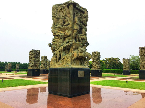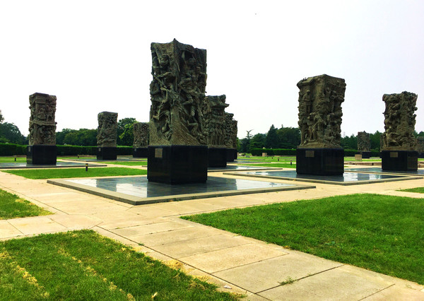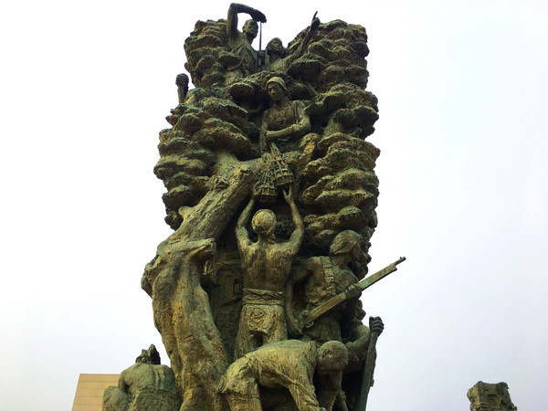 38座雕塑均为2米见方,柱高4.3米。浮雕、镂雕表现的每个场面,凝重悲壮!