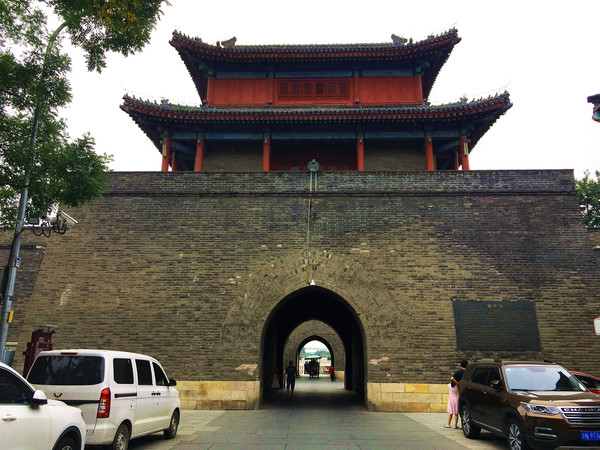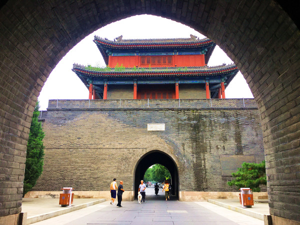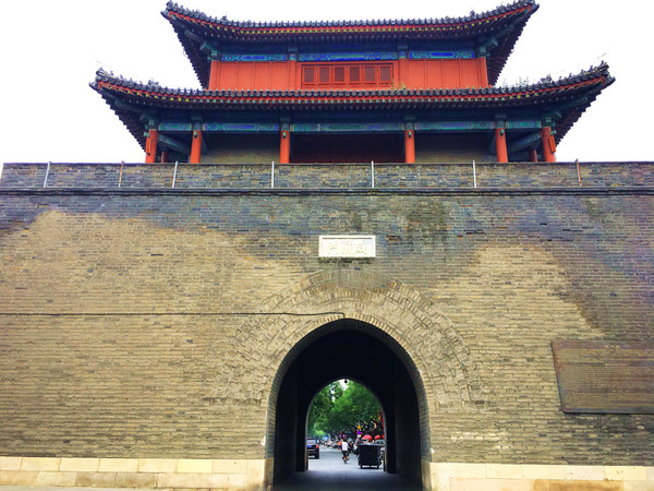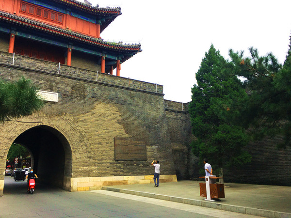 古城四周都有高高的城墙,这是明末崇祯年间为防范李自成农民军攻进京师,朝廷命御马监太监武俊于公元1638年主持修建此城。