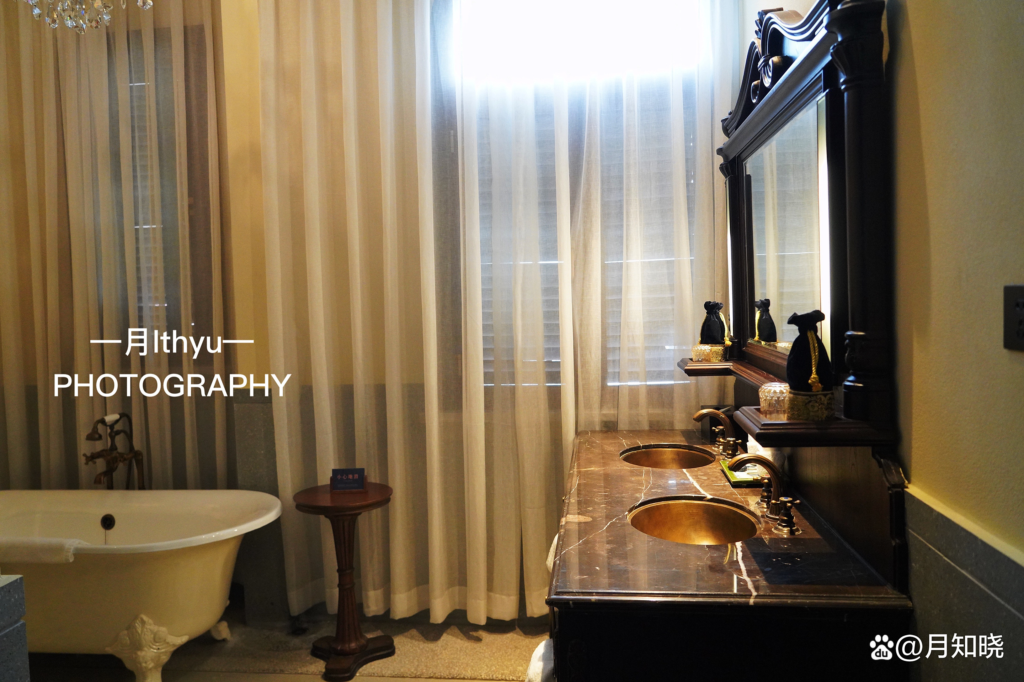 浴室干湿分离,还有着浴缸,墙面上的装饰及复古的洗手台,都让人眼前一亮。