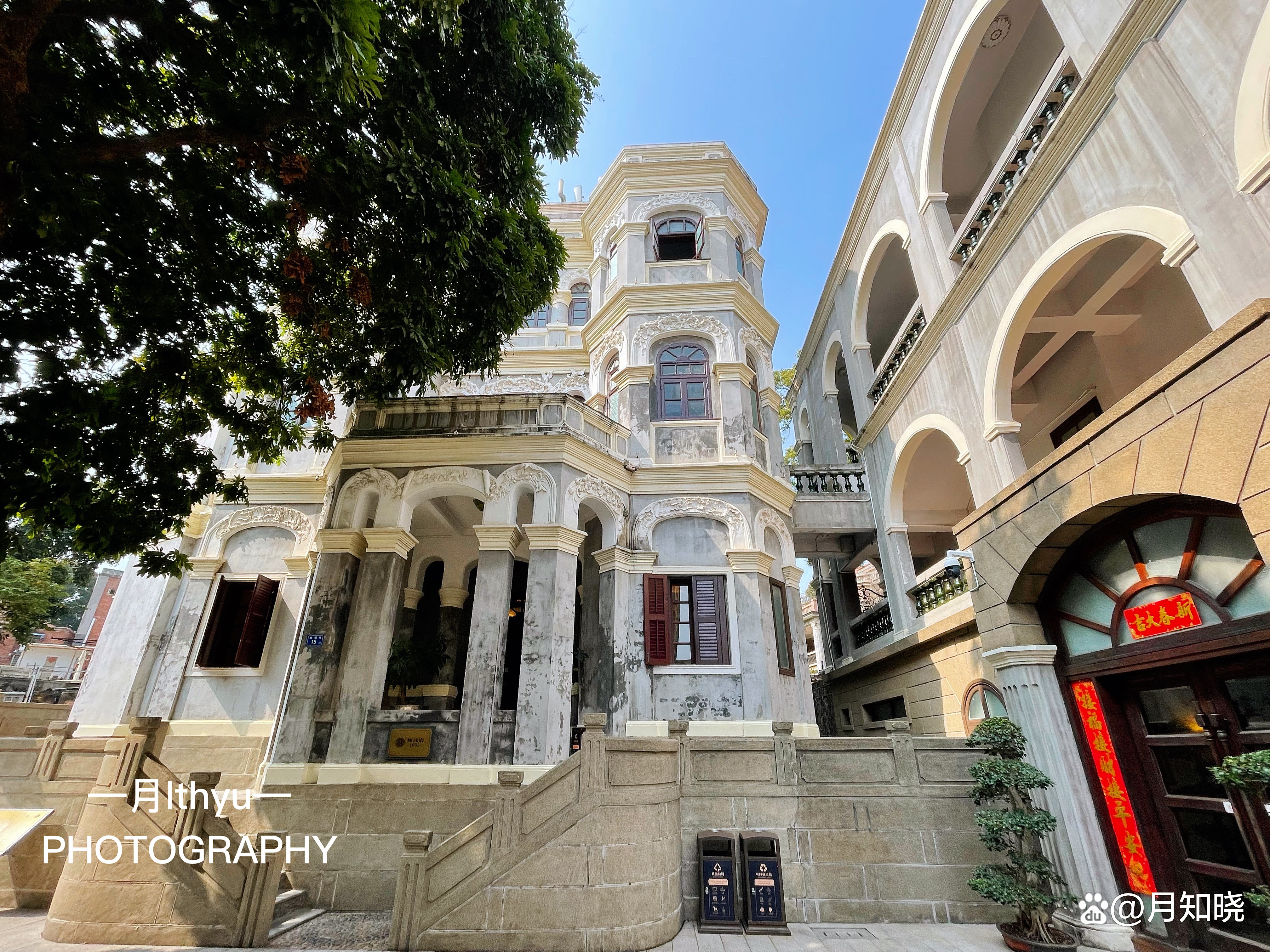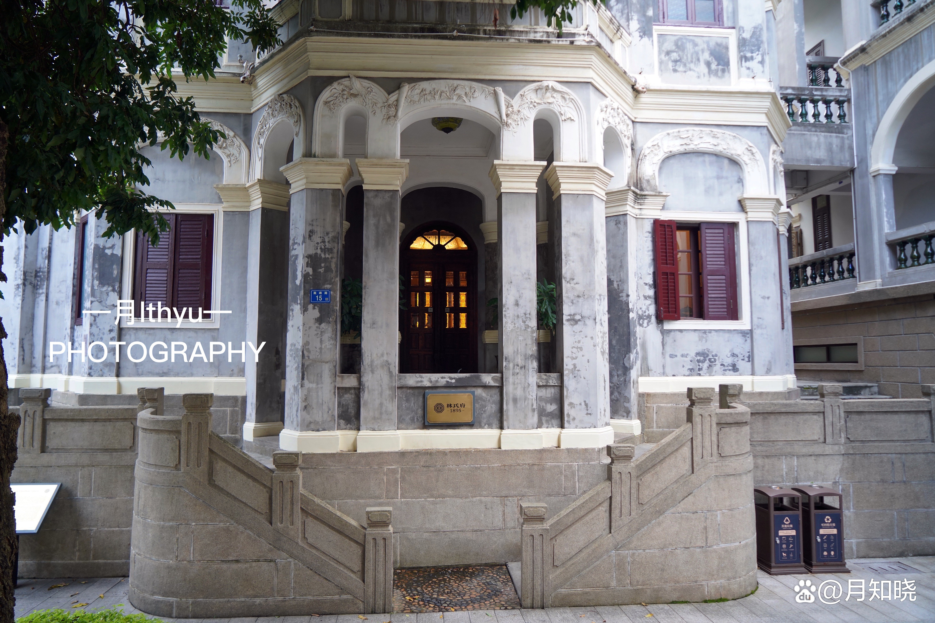 吃完下午茶,逛一下林氏府!先由最古老的八角楼开始,它一共5层,砖木结构,据说是由一名法国传教士所设计,既有南欧风格,又有巴洛克元素。别墅的外形呈不规则角面,形成许多个八边形,每个面上开拱券欧式窗,窗楣塑白鸽和缠枝花卉,洁白高雅,具有巴洛克气韵。这里的楼梯还保留了最早的木制旋转梯,中间的踩踏点是半圆的铜片。