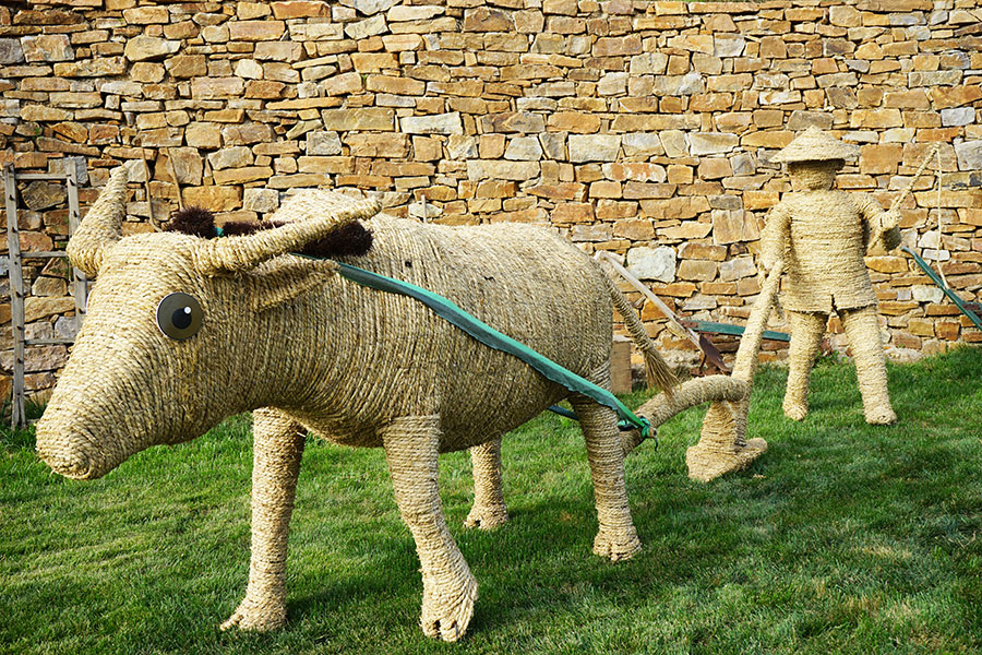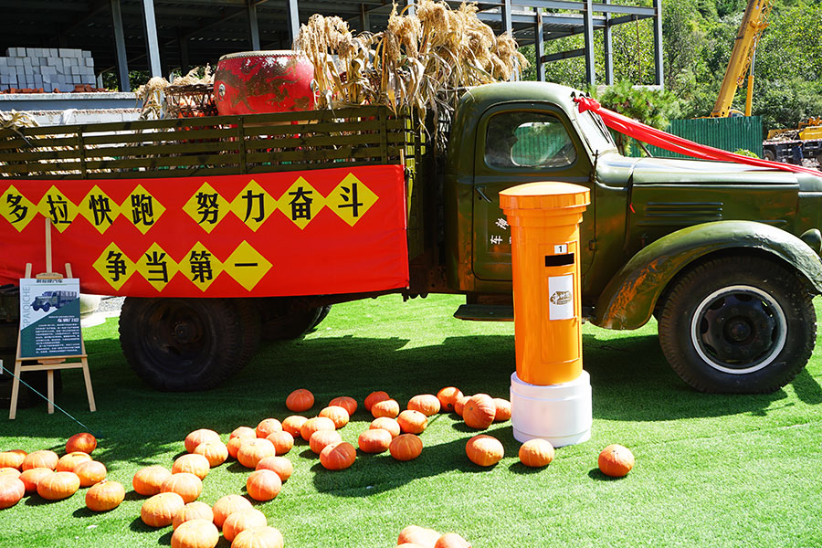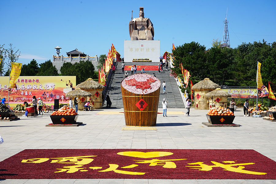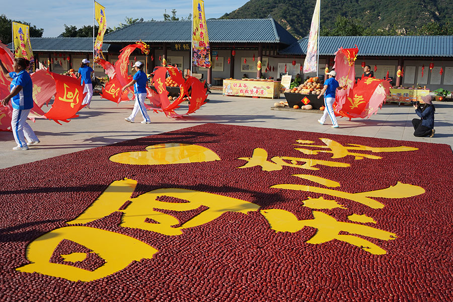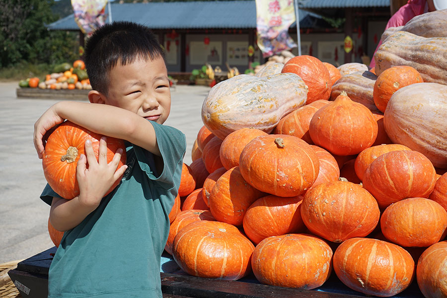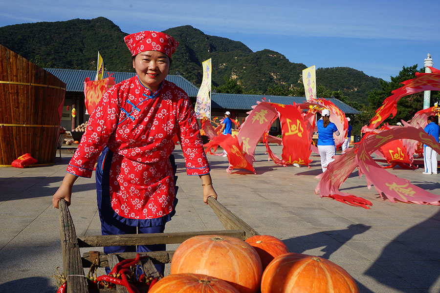 在这里,到处都可以看到辣椒、玉米、南瓜等丰富的农作物,以及用这些农作物摆出的各种造型,比如福字、五星红旗、“中国梦”等。此外,还有各种民俗表演以及农事体验、特长展示、手工比赛等活动,为游客提供沉浸式的互动体验。