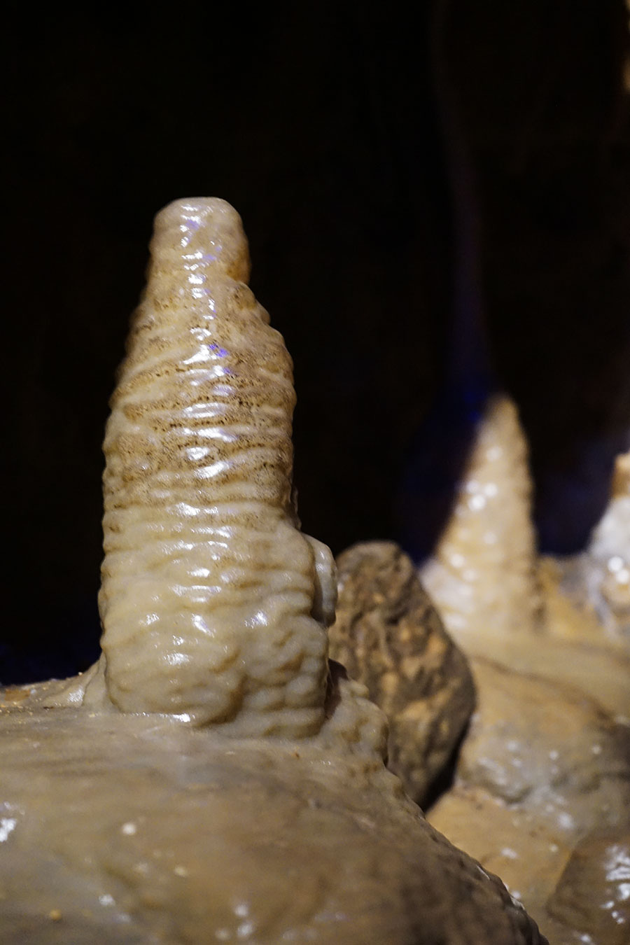 据说,天然洞穴里的“石笋”生长速度为100年仅一毫米左右,而雪玉洞每100 年的生长速度达到33毫米,堪称奇迹。作为游客,这个说法我们无从得知真假,估计是由专家考证后得出的结论吧。