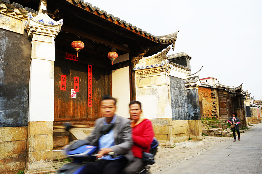通往古街的街道和普通小城的道路没有什么区别,绿树成荫下零散着的商户、小区建筑以及菜市场,在地图的指引下,不觉然进入了一条泛着古老气息的街道,不用说,水西林到了。