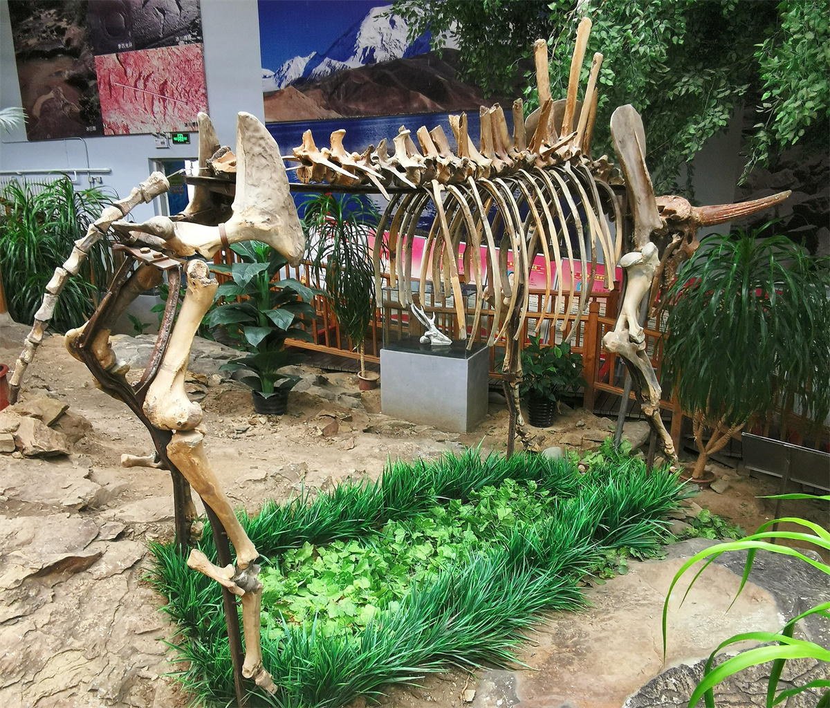 走进陈列馆,仿佛踏入一座浓缩的自然宝库:清晰的冰川擦痕遗迹静静诉说着地球的过往,高大的恐龙骨架、完整的鸵鸟蛋与恐龙蛋化石、古老的三叶虫标本、粗壮的猛犸象牙,还有大小各异的冰碛石实物标本,各类展品一一映入眼帘,让人目不暇接。