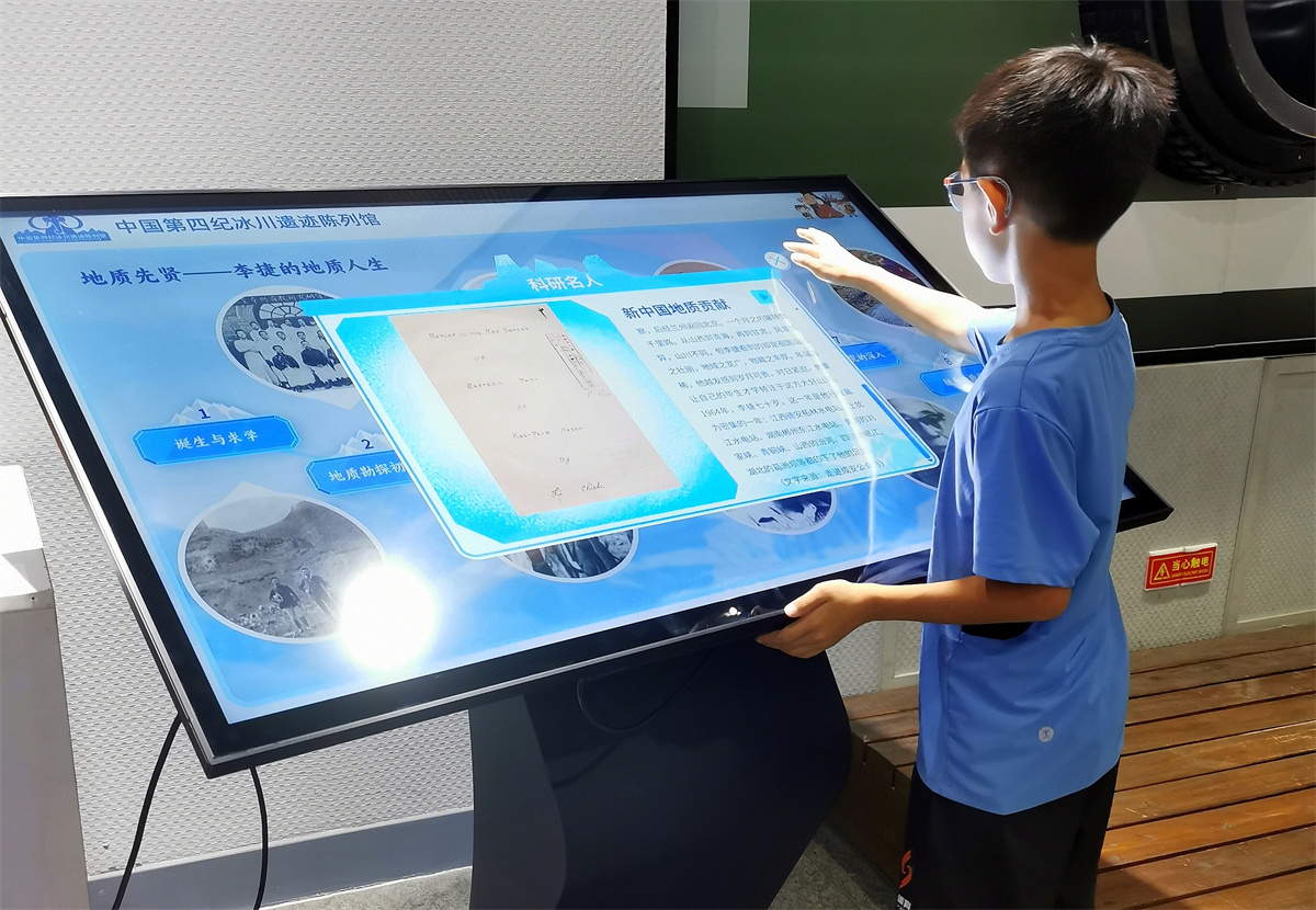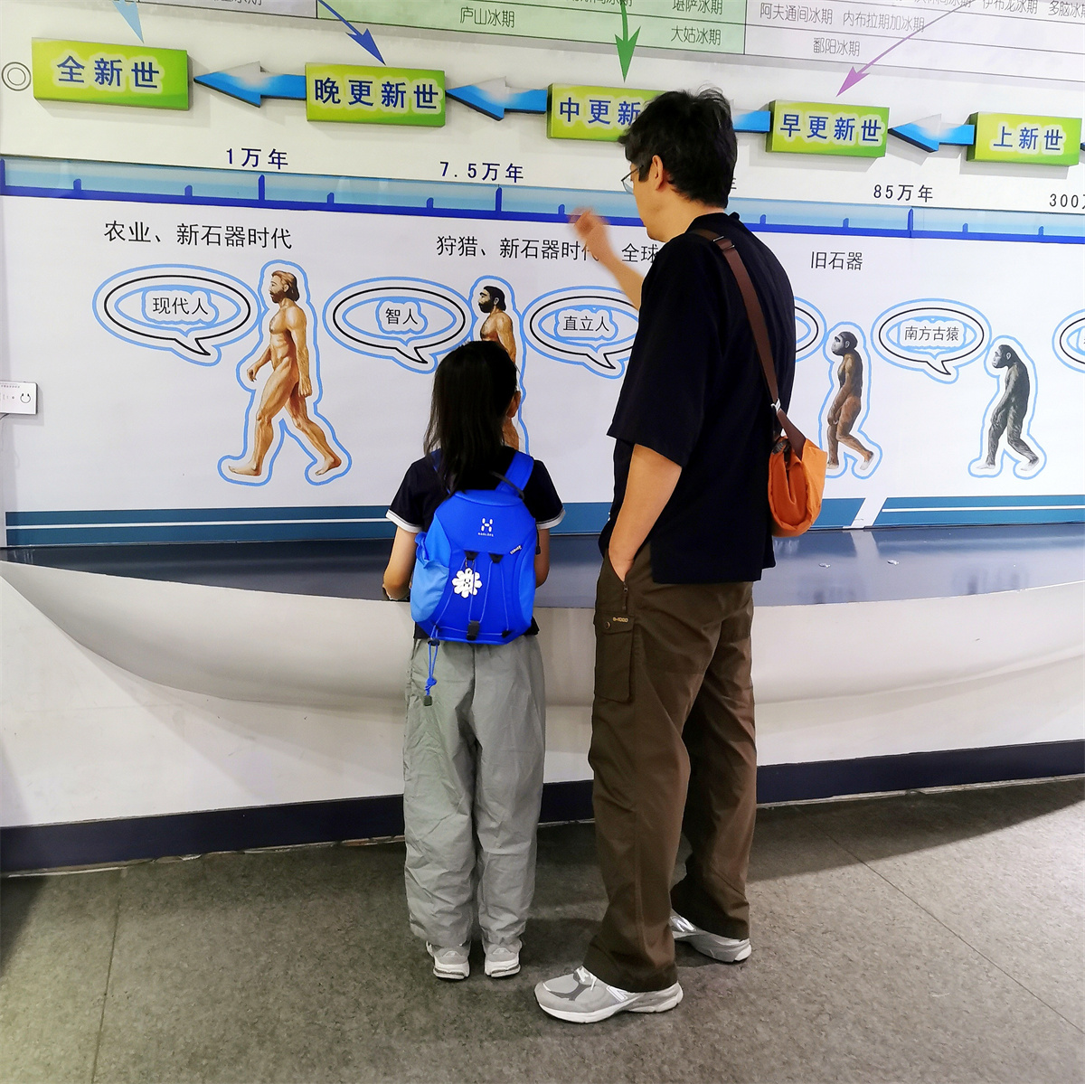 展厅内,图文展板详细解读了冰川的基本知识、形成规律,以及冰川活动对生物进化、人类发展的深远影响,成为人们了解自然奥秘的重要窗口。在人类进化示意图前,孩子们睁着好奇的眼睛,探寻生命演化的轨迹;电子显示屏前,他们认真阅读着地质学家李四光、李捷的探索故事,感受科学精神的传承;而在石头标本区,年轻人则俯身端详着晶莹剔透的宝石,仿佛从石头的纹理中读懂了岁月的年轮与地球的变迁。