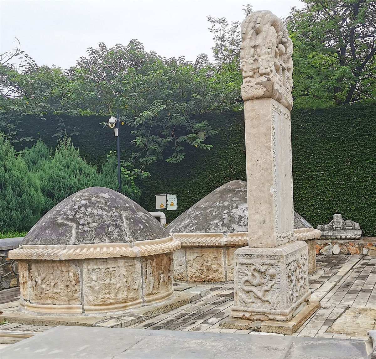 京西古道模式口大街80号,坐落着石景山区石刻博物馆。这座博物馆主要由三部分构成:室内展区、散落石刻展区与田义墓展区。通常情况下,游客参观的常设展览以露天展陈内容为主,其中最具看点的便是田义墓展区。