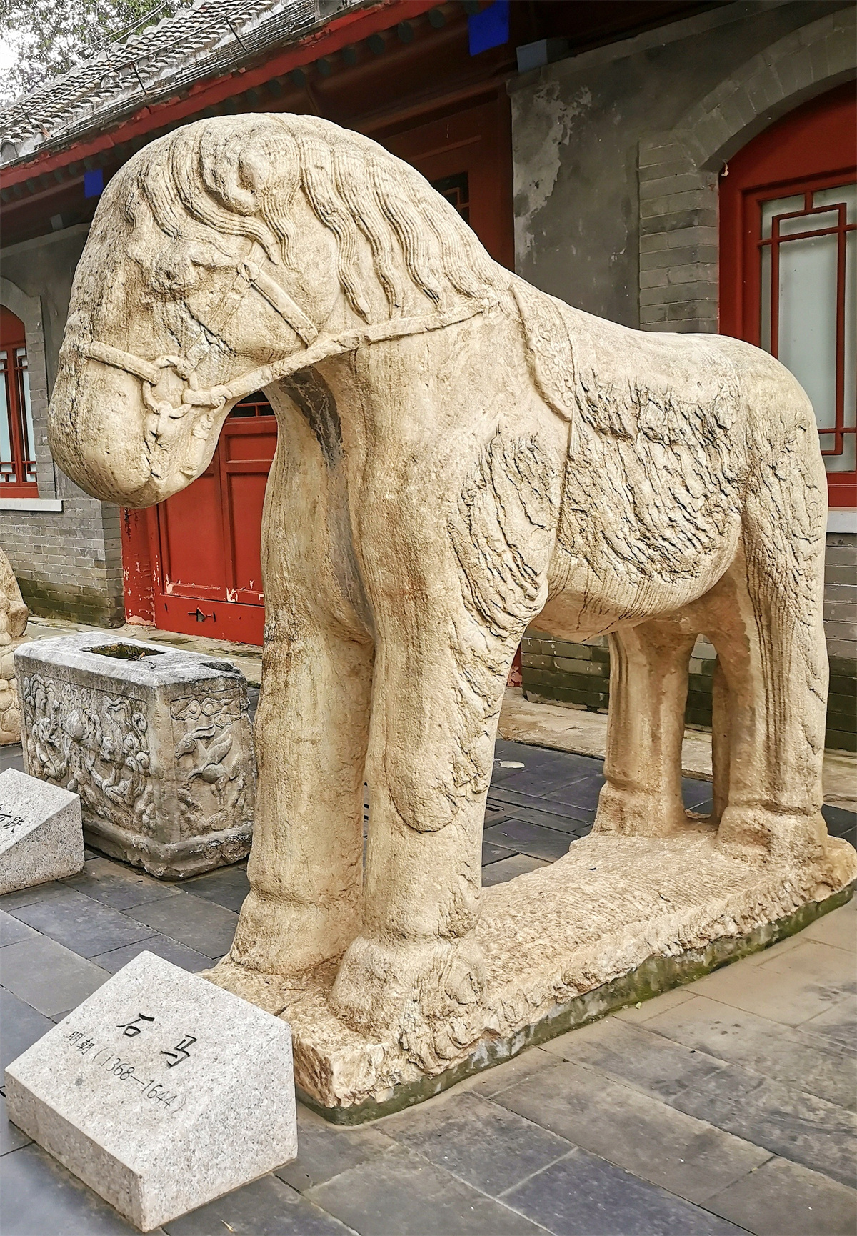 除了田义墓,露天展陈的石刻艺术品同样值得一看。在有着百年树龄的古树下,石马、石狮、石虎、石卧羊及石香炉等石刻静静矗立。或许正是因“京西福地”的说法,模式口山上时常能发现墓地遗迹。