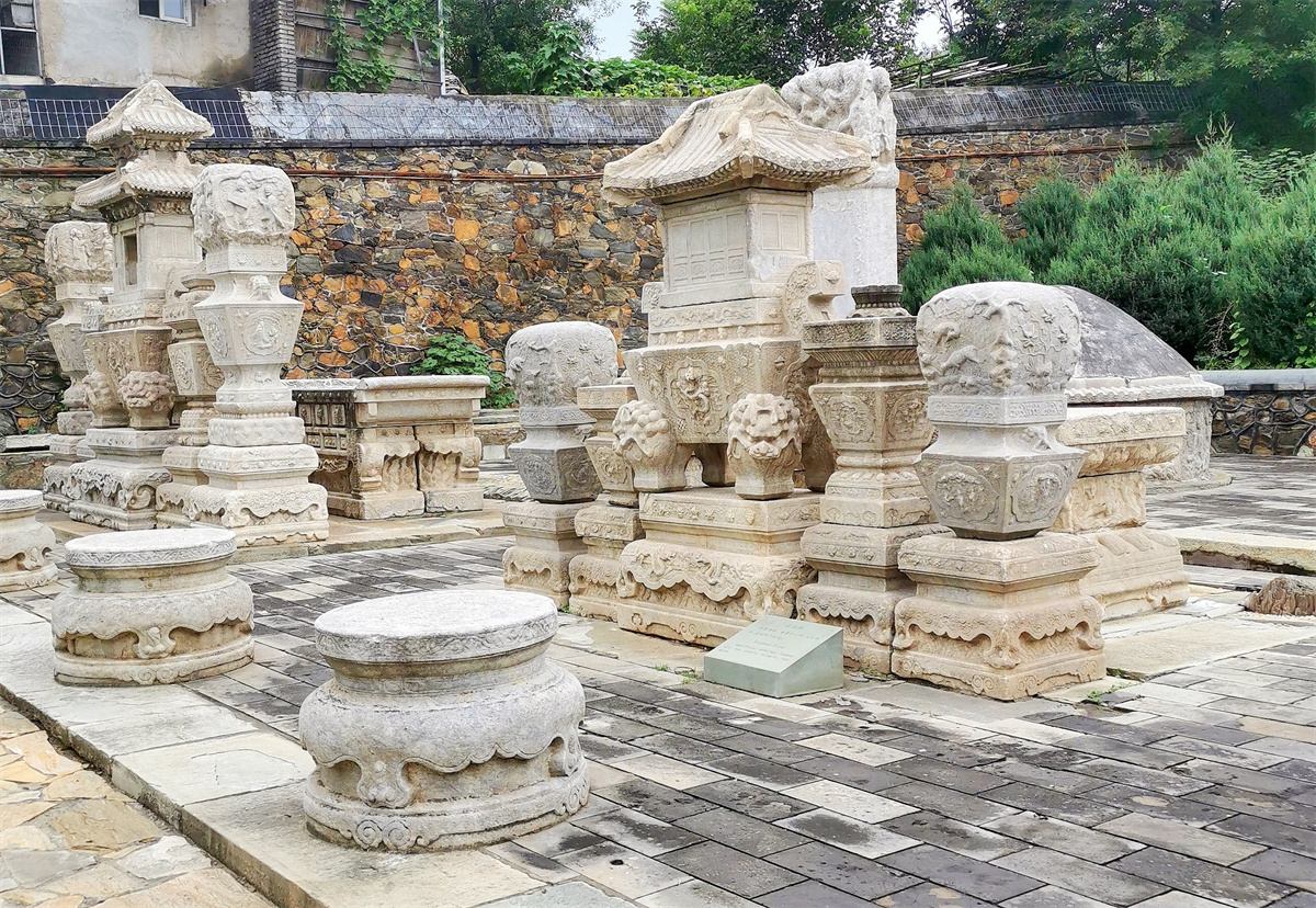 走进田义墓,凝重的氛围会让参观者不自觉放慢脚步,细细端详那些原本多见于皇陵的石像生,以及一道道石门、一方方精美的石碑。从墓地整体规格来看,等级颇高。园内的石刻艺术品丰富多样,既有石五供、石宝瓶、石香炉、石供桌等器物,青石之上还雕刻着历史典故。这些精美的雕刻静静伫立,仿佛在向人们讲述过往的故事,每一件都令人赞叹不已。
