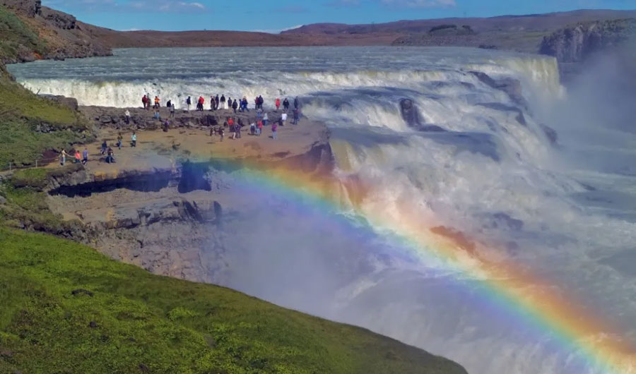 最后是黄金瀑布。那瀑布如同一条金色的巨龙,从高处奔腾而下,发出震耳欲聋的轰鸣声。水流撞击在岩石上,溅起无数水花,像是无数颗钻石在阳光下闪烁。我站在瀑布前,看着那奔腾的水流,心中充满了震撼。这是大自然的力量,是时间的见证。我仿佛看到了冰岛的历史,从冰川时代到如今,这片土地一直在经历着变迁,却始终保持着它的美丽与神秘。