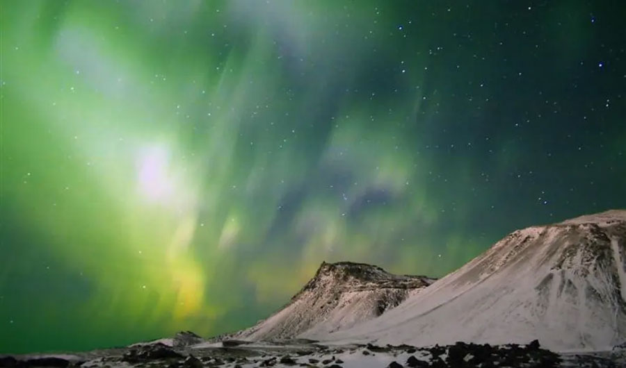 飞机降落时,窗外已是白茫茫一片。冰岛的土地,黑岩上覆着薄雪,像是巨人用炭笔勾勒后又以橡皮擦轻轻抹过,留下灰白的痕迹。出了机场,寒风扑面,竟不觉得刺骨,反倒清新得很,吸入肺中,宛如饮了冰镇的泉水。
