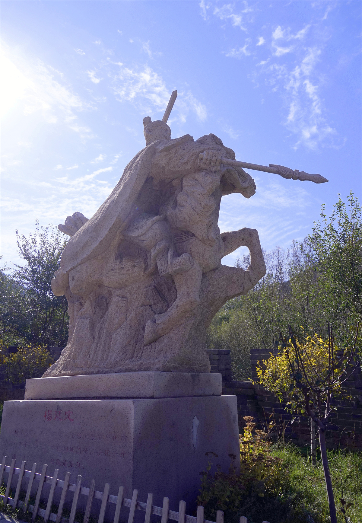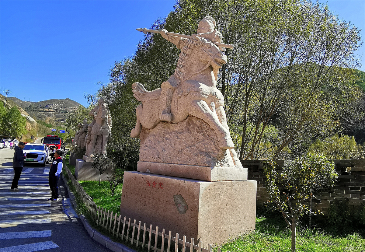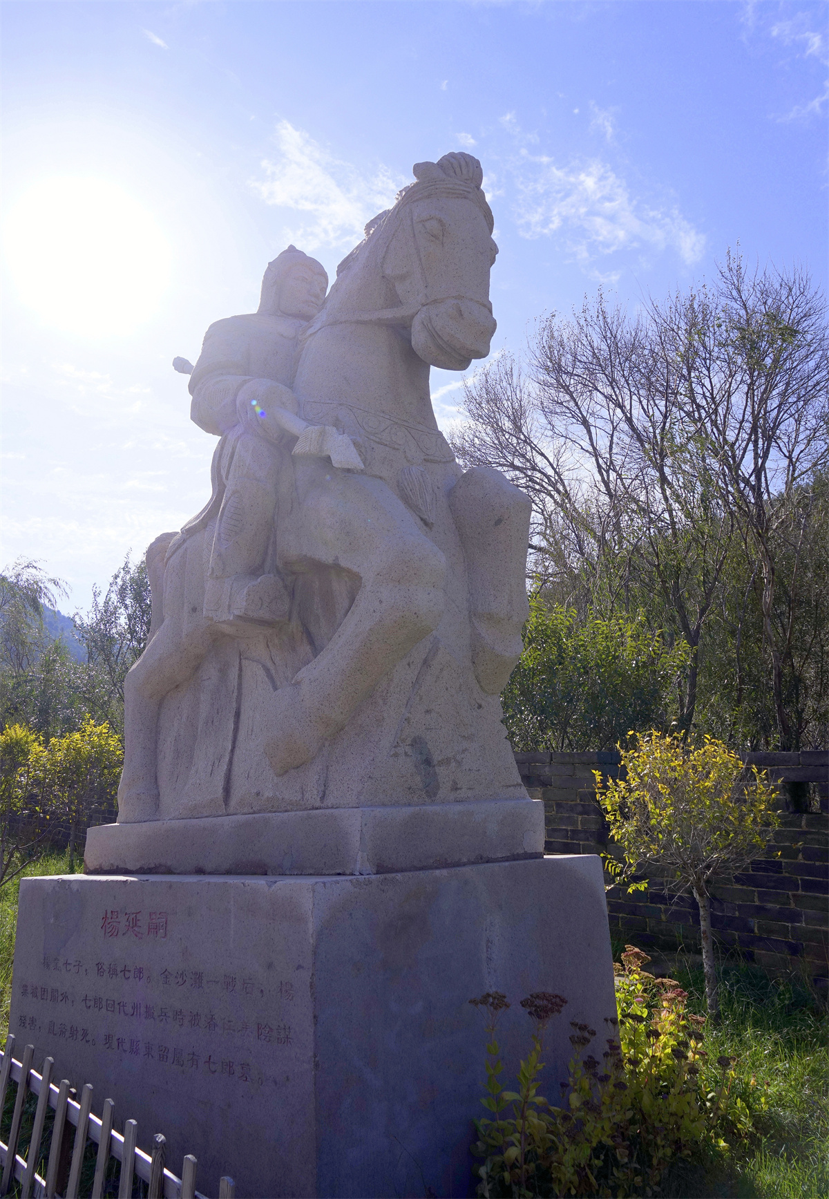 继续驱车上行,“雁门关”的城楼进入视野。踏入景区,最先迎接游人的并非古老的关隘建筑,而是一片错落有致的杨家将雕塑群。这片雕塑群以杨令公为核心,向两侧延伸开去,佘太君身披战甲、手持令旗,虽为女子却透着不输男儿的刚毅;杨六郎腰挎宝剑、眉头微蹙,似在思索御敌之策;每一尊雕像的衣袂褶皱、铠甲纹路都刻画得细致入微,仿佛下一秒便会迈步向前,奔赴战场。