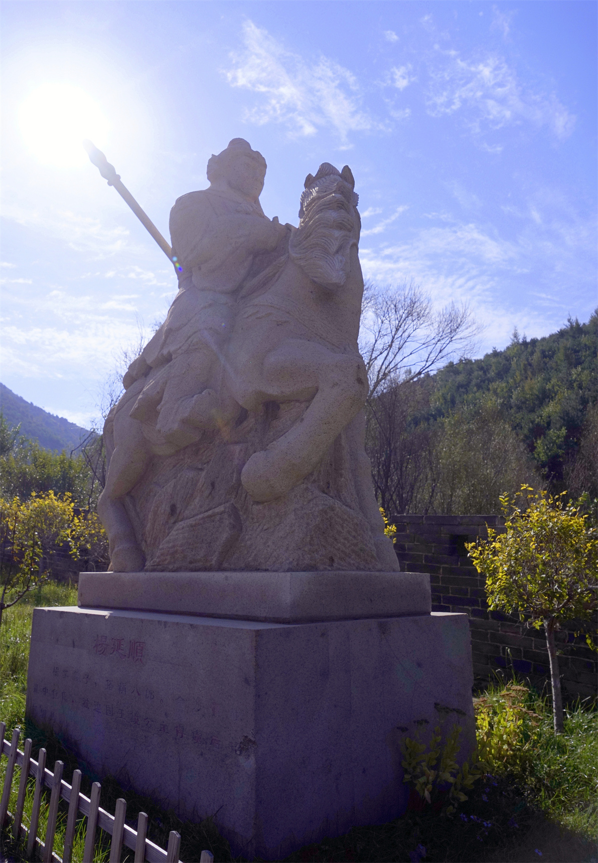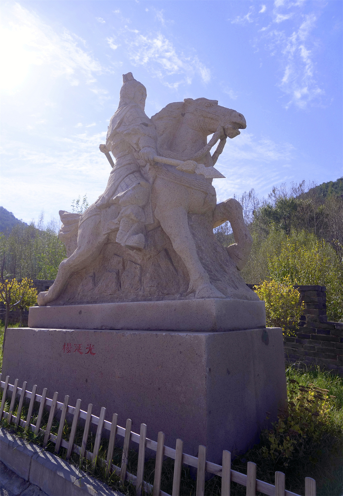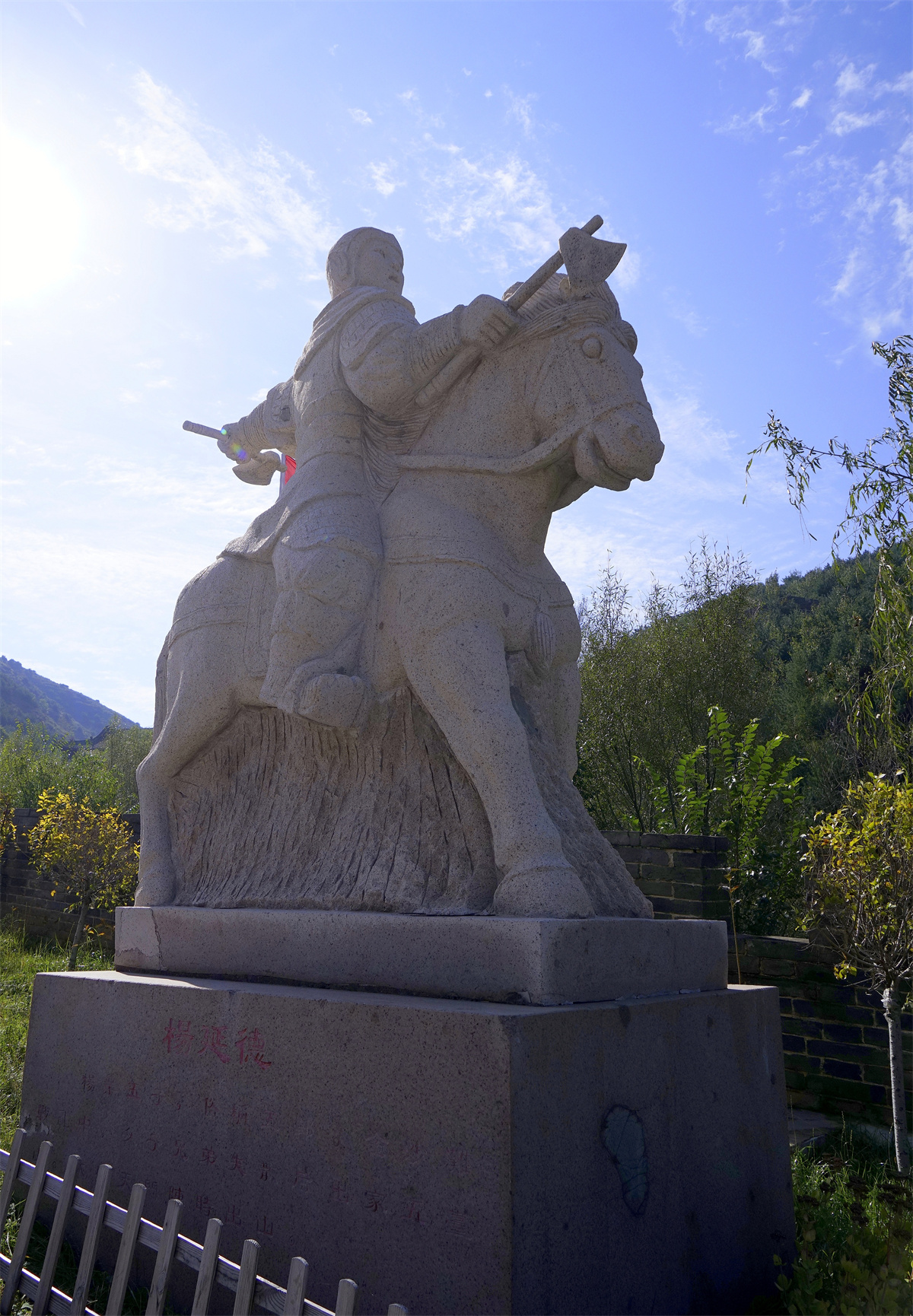 继续驱车上行,“雁门关”的城楼进入视野。踏入景区,最先迎接游人的并非古老的关隘建筑,而是一片错落有致的杨家将雕塑群。这片雕塑群以杨令公为核心,向两侧延伸开去,佘太君身披战甲、手持令旗,虽为女子却透着不输男儿的刚毅;杨六郎腰挎宝剑、眉头微蹙,似在思索御敌之策;每一尊雕像的衣袂褶皱、铠甲纹路都刻画得细致入微,仿佛下一秒便会迈步向前,奔赴战场。