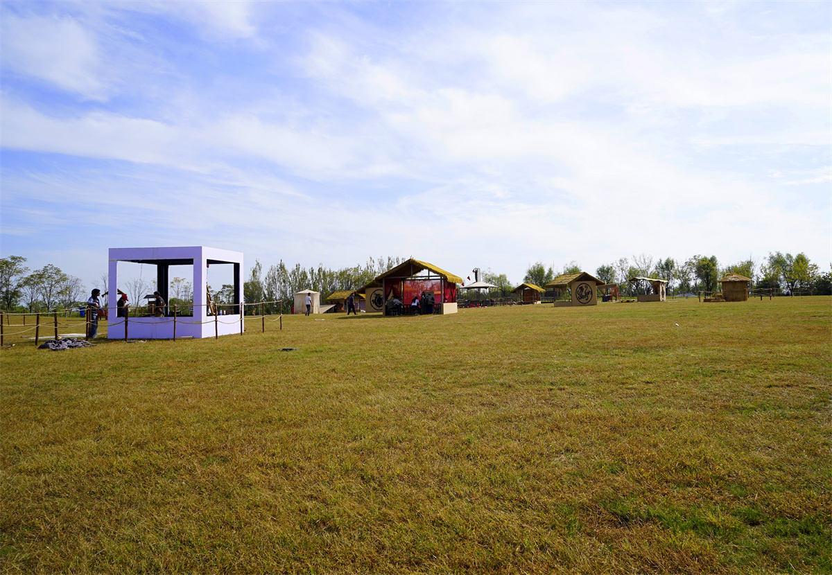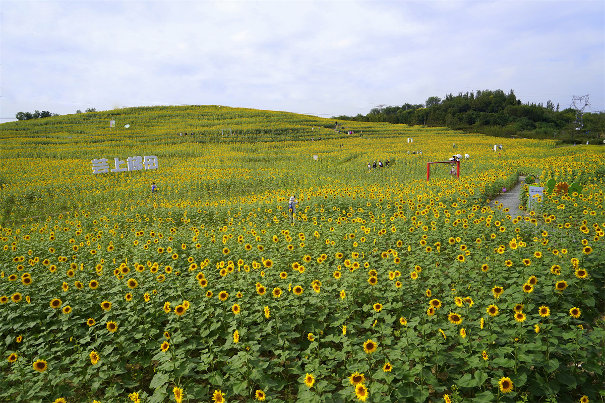 西园的核心看点丰富多样,茑屋、沁湖—阳光沙滩、芸上梯田等景观各具特色,其中最引人注目的当属芸上梯田。秋日暖阳下,漫坡的向日葵绽放出金灿灿的花盘,站在高处俯瞰,整片花田如金色海洋般壮观,随手一拍都是绝美风景。