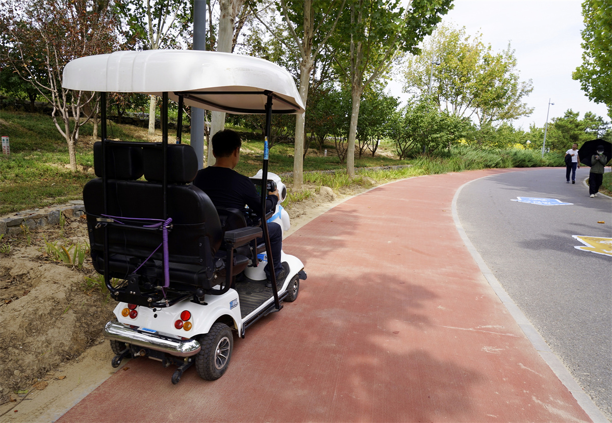 值得一提的是,西园仅是温榆河公园的一小部分,整个园区面积广阔。若想全方位感受园景,可选择徒步沿着步道慢慢逛;若想节省体力,也可乘坐观光小火车、伴游机器人,或是租借脚踏车;遛娃家庭还可租一辆共享童车,轻松带娃游园。秋日里游走在这样的郊野公园中,既能亲近自然,又能感受野趣横生的休闲时光,实属难得的惬意体验。