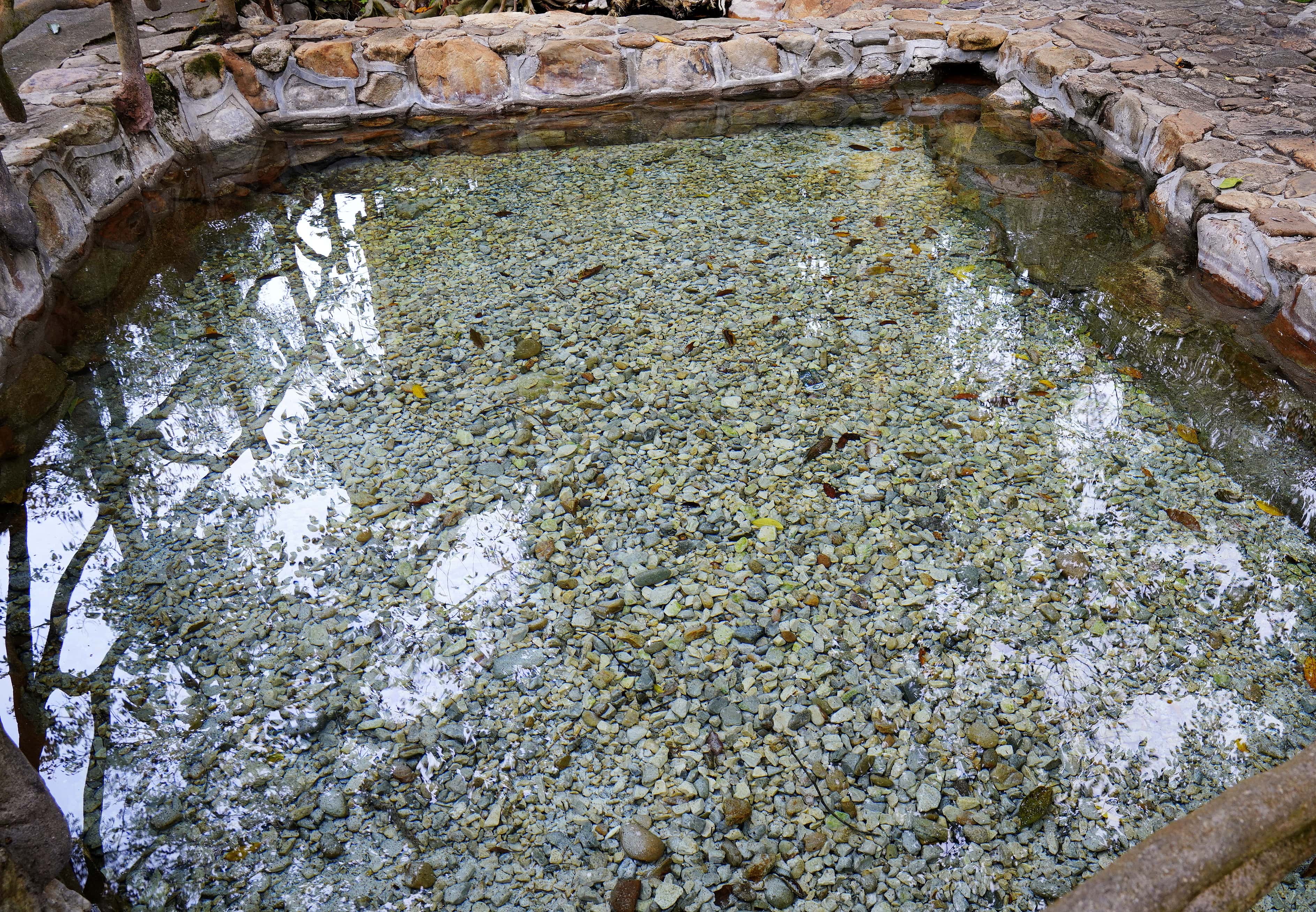 踏入园区,最先映入眼帘的是一池温泉与一座金色傣族塔亭,这便是佛泉圣水池与佛印仙踪。相传佛祖释迦牟尼曾在莫里山修行悟道,山里的红牙白象担心佛祖沐浴受凉,便用象牙拱出池塘,又将烧红的石头滚入水中,让池水化作温暖的温泉。金色塔亭内的佛脚印、山间奇特的树包石,也都在向后人诉说着与佛祖相关的古老传说。