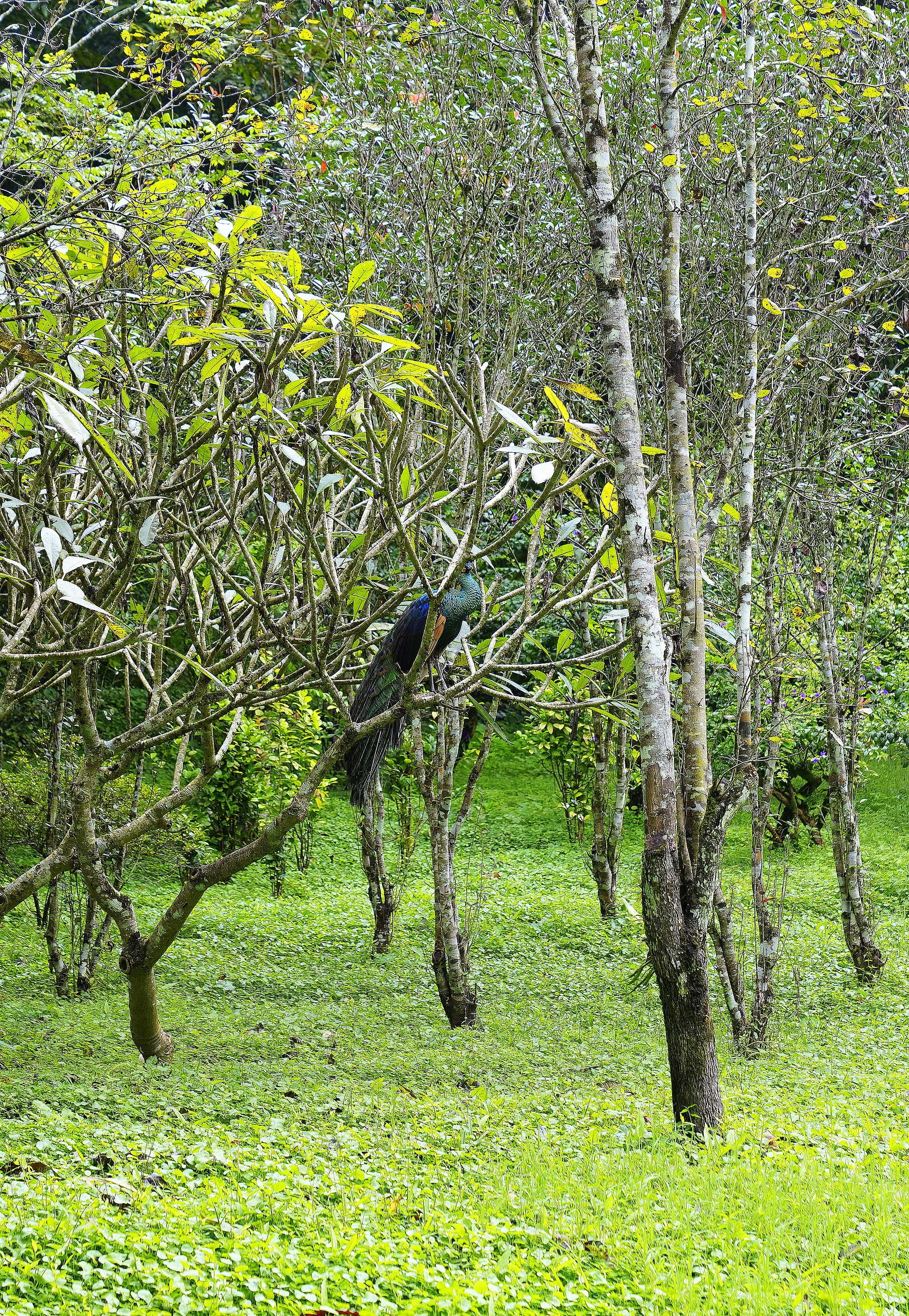孔雀园是游人最爱的互动之地。这里的孔雀早已习惯了人类好奇的目光,它们或在草坪上悠闲漫步,或站在树杈上静静伫立,凝视着过往游人,一副满不在乎的模样。受这份慵懒氛围感染,游人们也放慢了脚步,友好地拍下合影,尔后挥手告别。