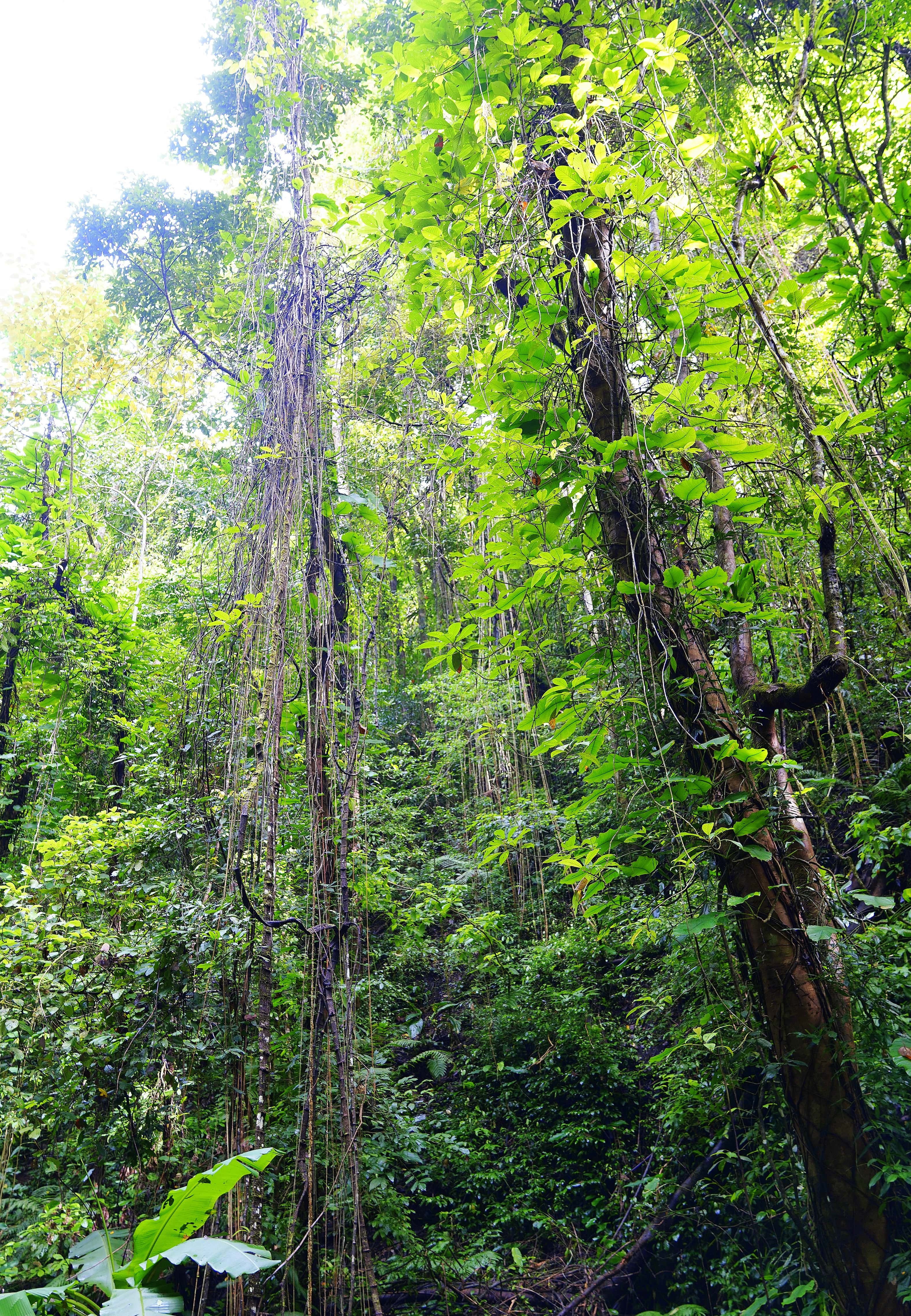 森林里的树木更是形态万千,有的形似琴弦,有的宛如树上缠蛇,1500多种植物与近500种花卉将雨林装点得生机盎然。新鲜的空气裹挟着草木清香,新奇的景观不断闯入视野,让人满心舒畅、心旷神怡。