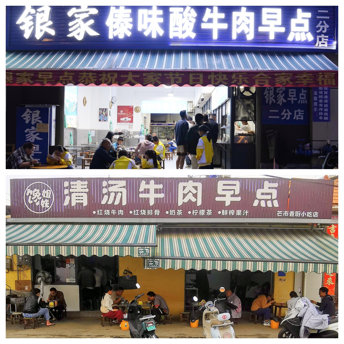 若想解锁本地风味,也可步行至附近街巷觅食,酒店旁的 “银家傣味酸牛肉早点” 和对面芒核村街里的 “馋姐妹清汤牛肉早点”,都是当地人常去的宝藏小店。这里的早点最讲究调料,一碗看似简单的牛肉面,竟能搭配十多种配料,其中模样酷似树木枝条的 “山胡椒” 尤为特别,用刀子轻轻刮下树皮沫撒入汤中,独特的清香瞬间提升了整碗面的风味层次。