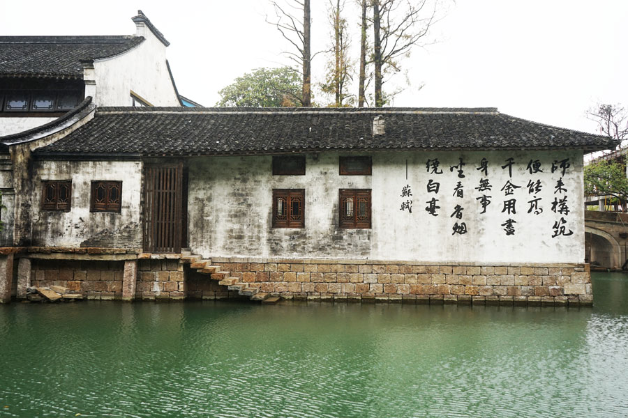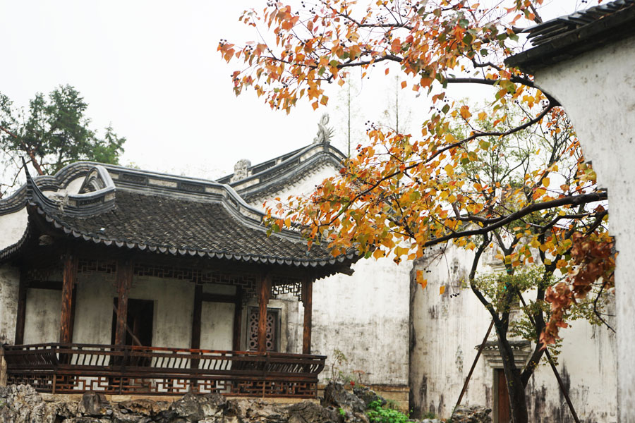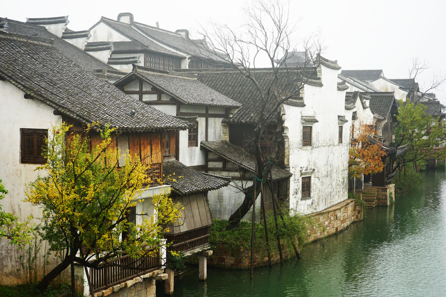 置身古镇街巷,那一片苍老的黛瓦粉墙,静静地矗立于西斜风细雨中,尽管季候已是初冬,但这里宛如仲秋,草木的叶子金黄而迷人,与小桥流水和黛瓦勾勒出美好的视觉享受。空气湿湿润润,带着一丝河水与泥土混合的、微凉的气息。这气息,或许是江南独有的味道,仿佛能沁到人的骨子里去。