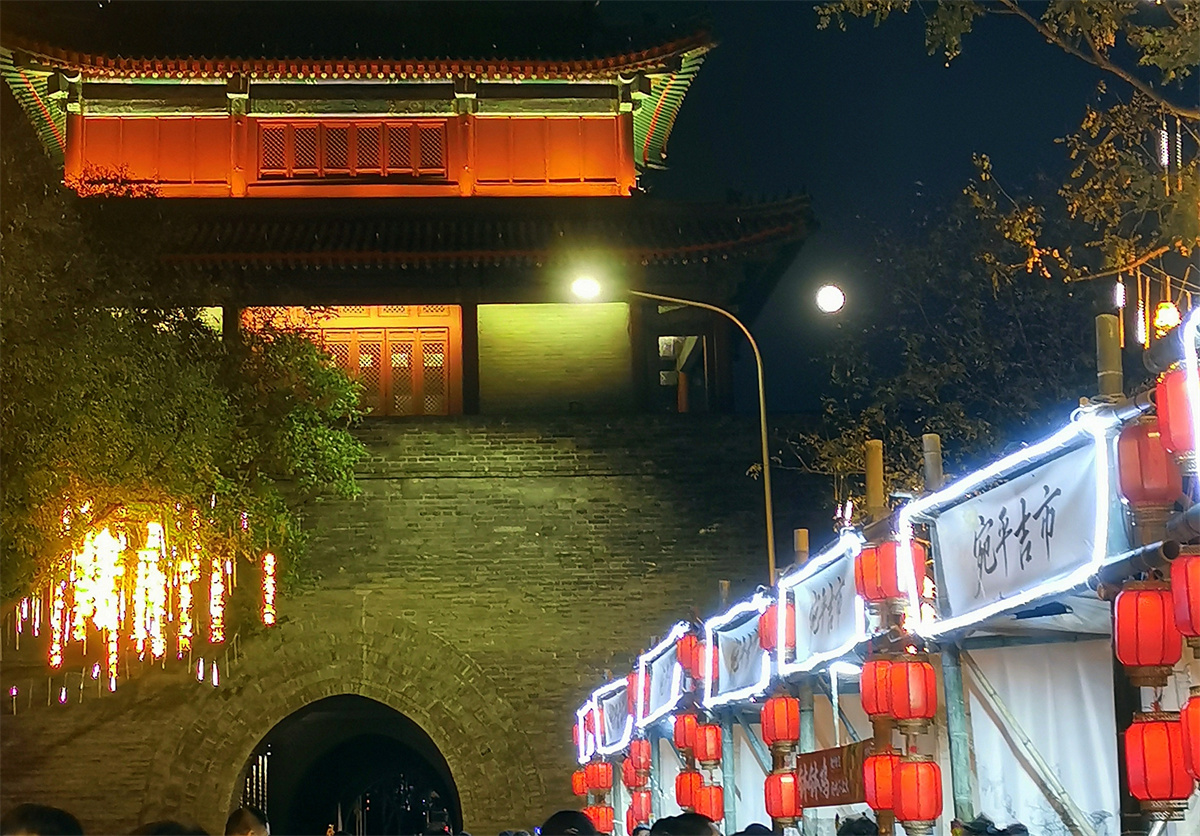 国庆、中秋双节期间重游宛平城,热闹的宛平吉市充满烟火气,夜晚璀璨灯光与古城墙相映,头顶一轮明月更添意境。那轮圆月仿佛也被人间的热闹吸引,静静悬于夜空,见证这份独特的节日氛围。