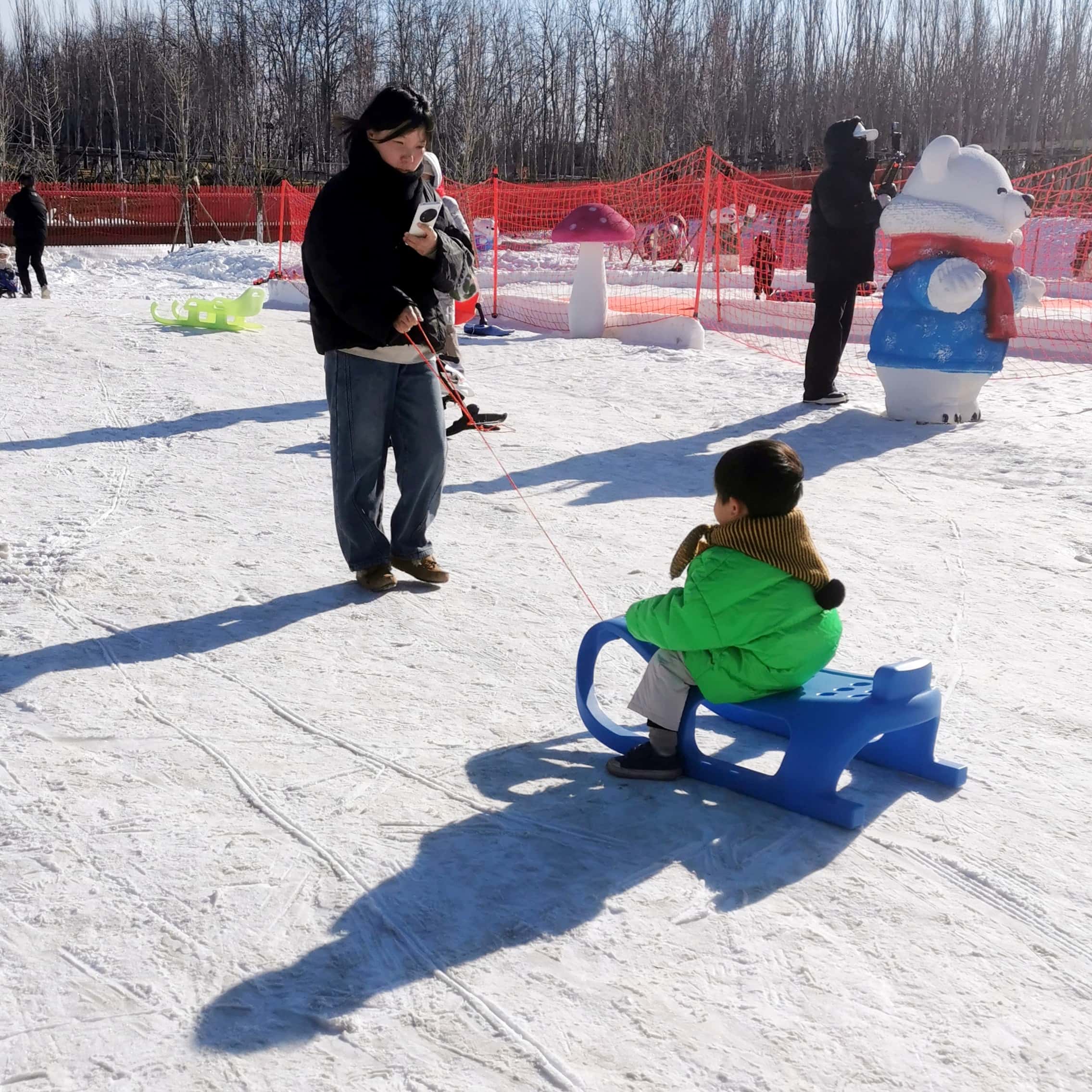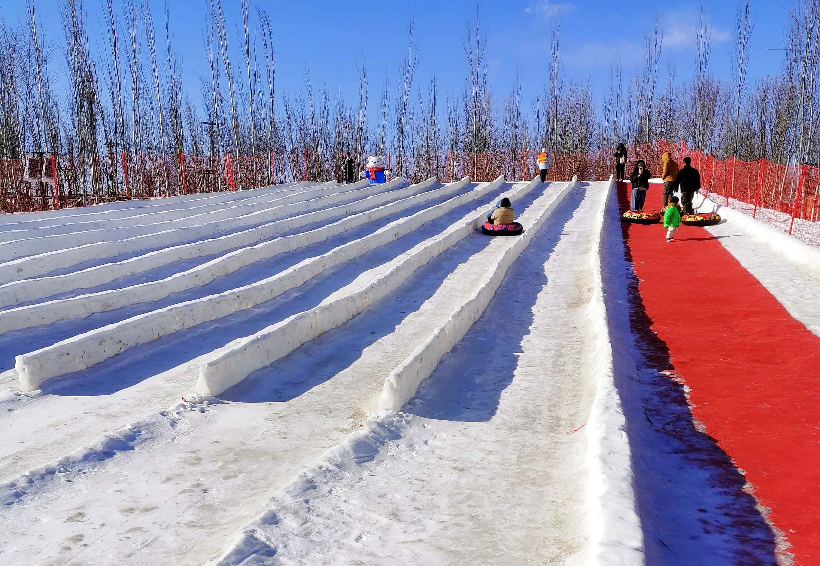 雪场专为孩子们打造了缤纷游乐项目,让人跃跃欲试:坐上雪圈感受风驰电掣的速滑快感,驾驶雪地履带车肆意驰骋,跨上雪地摩托绕场兜风,钻进悠波球翻滚撒欢,操作雪地挖掘机体验童趣,或是坐在冰车上滑行,尽情触摸冰雪世界的神奇与欢乐。