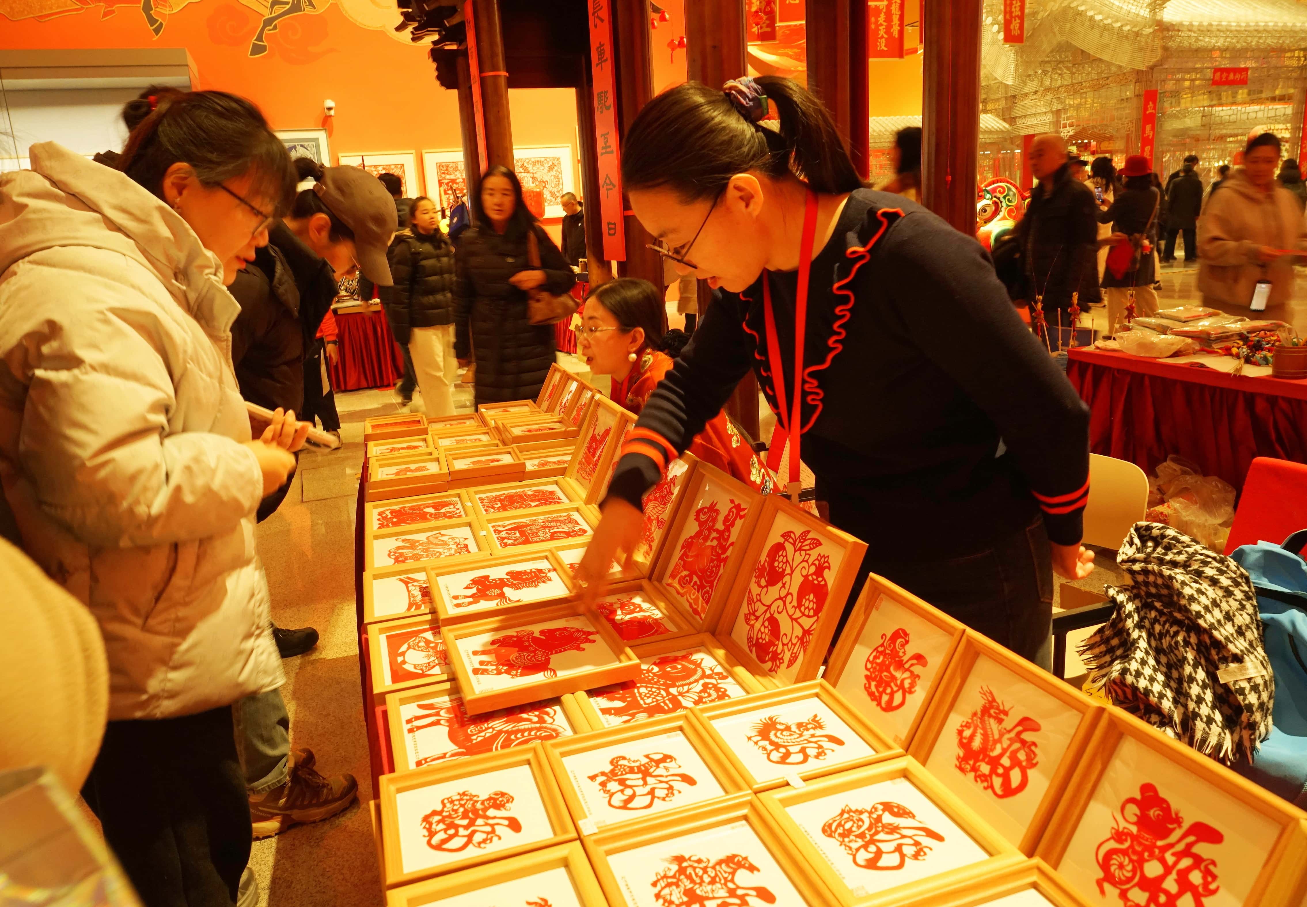 亲手拓印一张满载祝福的新年福字,是许多观众必体验的温情项目。大家用心制作,细心珍藏,这不仅是为新春佳节祈福许愿,更是把对新年的美好期盼,稳稳留在笔墨之间。展厅里,昂首奋蹄的竹编骏马灵动传神,寓意风调雨顺的精美雕塑大气磅礴,传统技艺与新春意象交织,带来一场沉浸式的艺术享受。