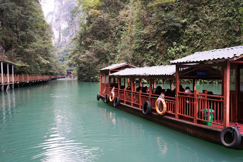 再往前走,溪水汇成了一汪碧绿的湖。湖水清澈得像块翡翠,能看见水底摇曳的水草,像一片微缩的原始森林。我们登上游船,船桨划破水面,惊起几只野鸭,扑棱着翅膀掠过水面。岸边的野花沾着水珠,在风里轻轻摇晃,远处有背着竹篓的村民朝我们挥手,竹篓里装着刚摘的野菜,翠生生的。