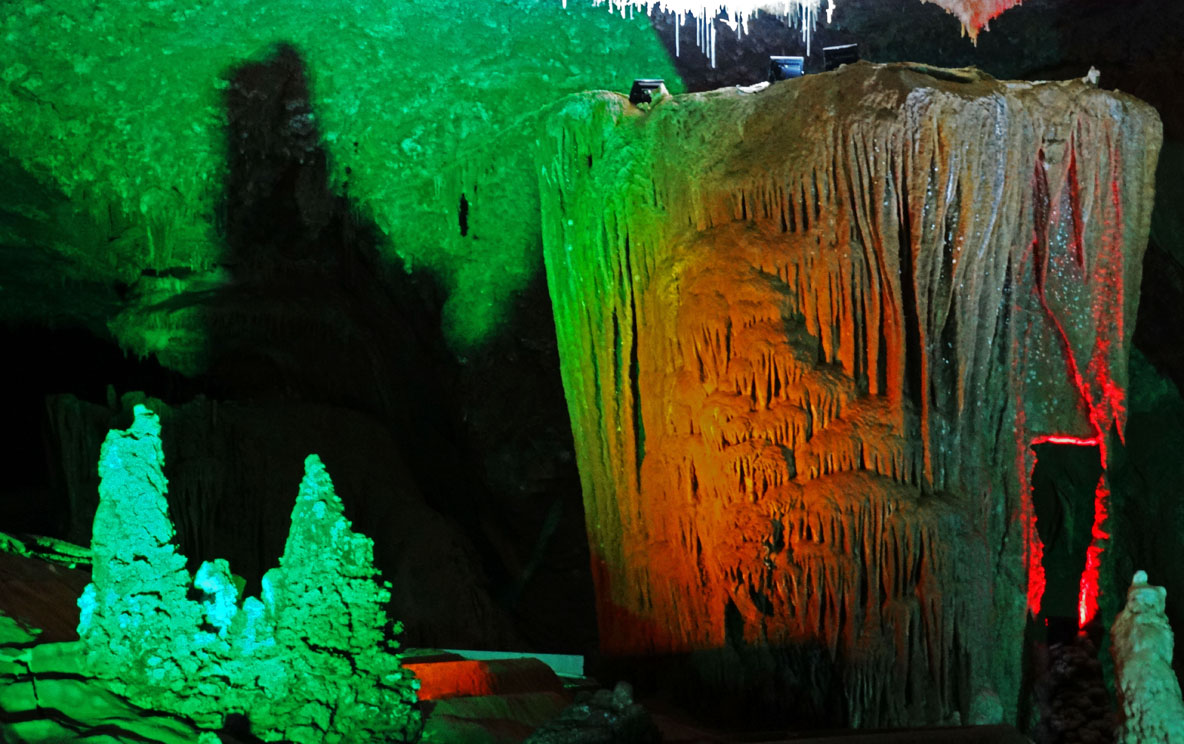 那些发出水晶般的光泽的钟乳石就像一个个老寿星堆砌着、排列着、舒展着,错落有致,让你不得不一边惊叹大自然的鬼斧神工,一边会惊叹洞穴景观与巴马长寿文化的相得益彰!