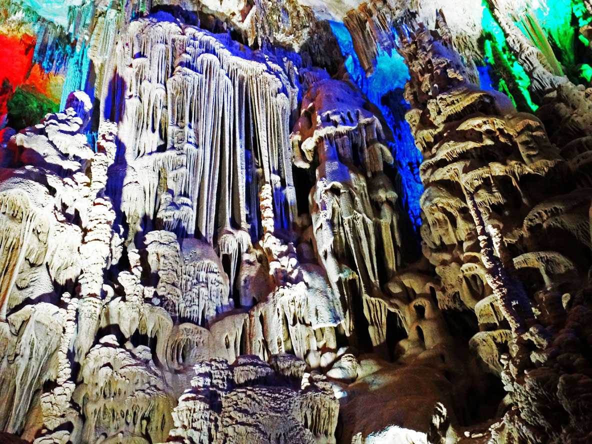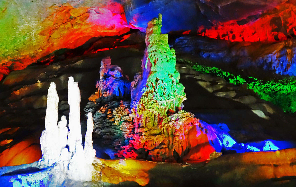 我想,每个人在这里都会有这样的惊叹吧。真正的一步十景,姿态千变万化,这些原始的未经人工修饰的石头形状堪比珍宝。不同的灯光色彩反射出不同的意境,神话传说中的场景在这里展露无遗。